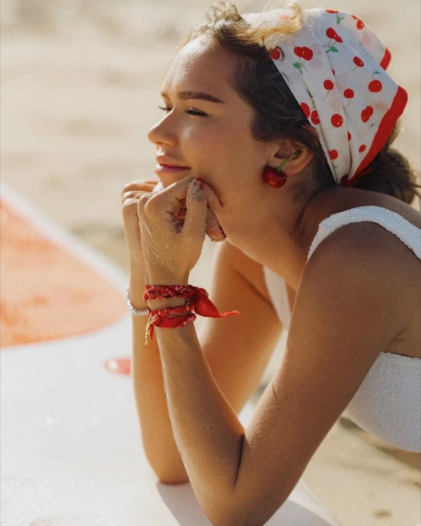 Стеша Маликова отдыхает в Дубае. 25-летняя дочь певца Дмитрия Маликова и основательница бренда одежды Dress by Stesha снялась в пляжной фотосессии и опубликовала снимки в соцсетях. На кадрах Маликова позирует в белом слитном купальнике и в косынке с вишнями. Образ дополнили серьги в форме вишен и красный маникюр.
