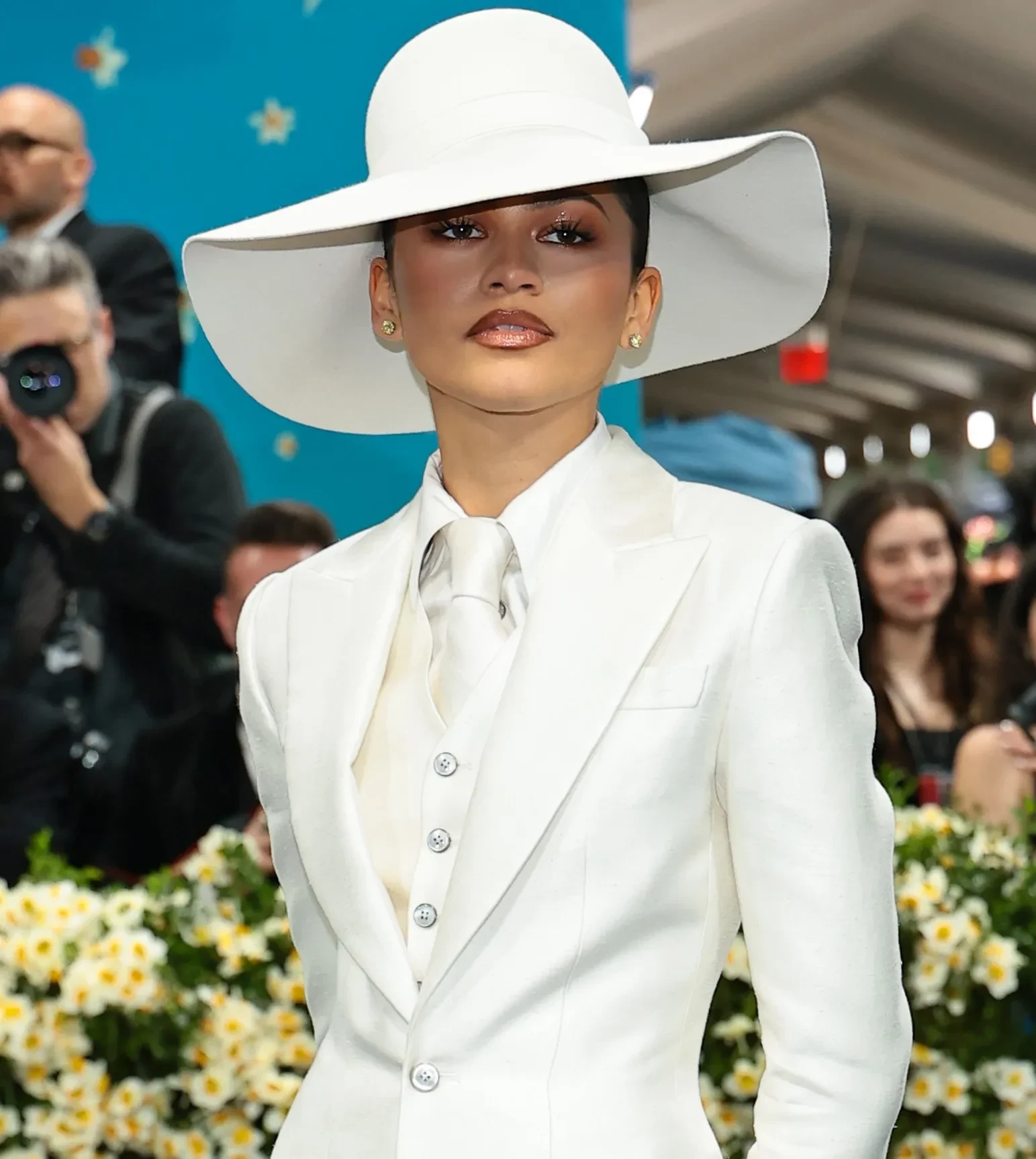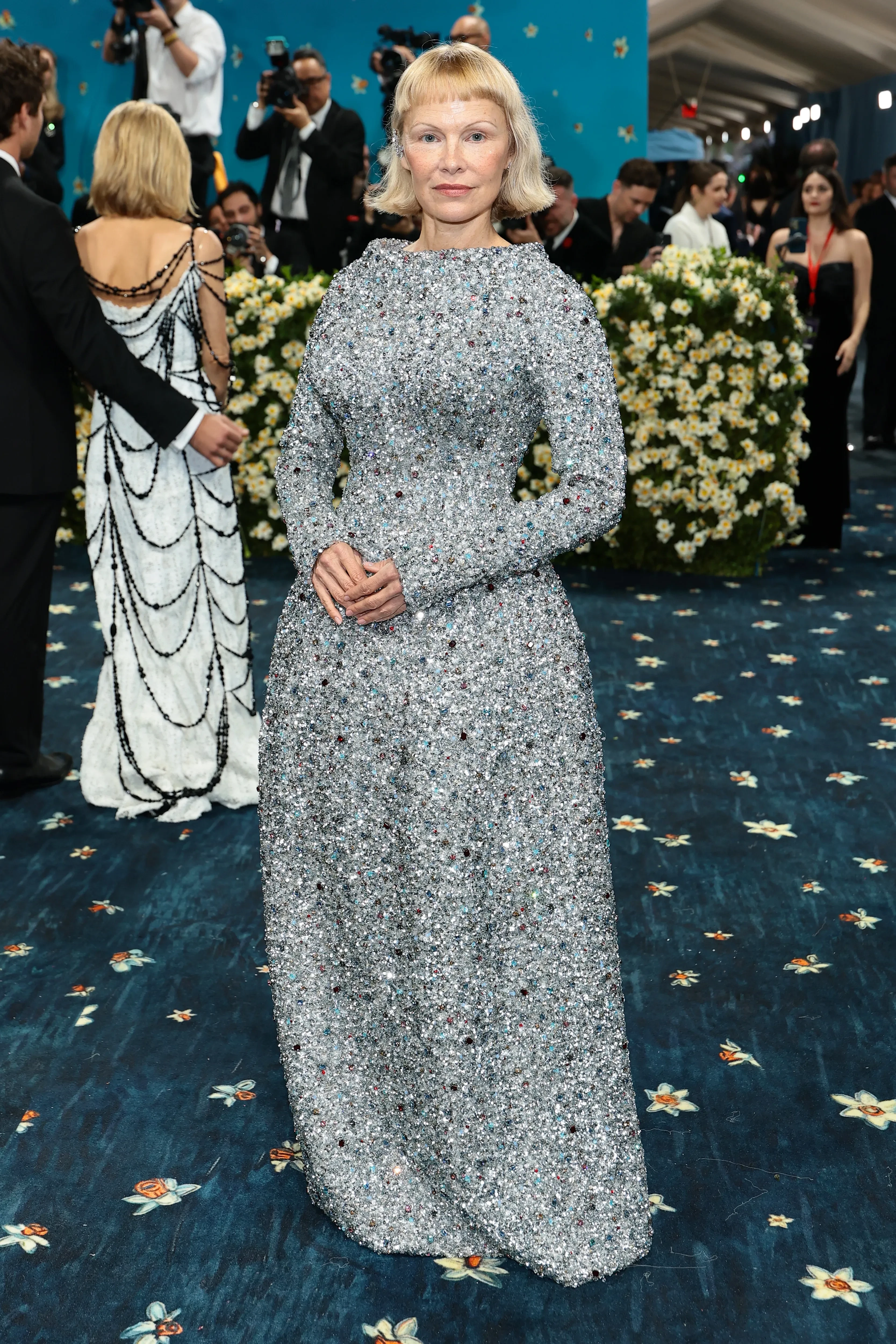 Памела Андерсон28-летняя Зендая появилась перед камерами в светлом брючном костюме Louis Vuitton: её стилизовал недавно вернувшийся в модную индустрию Ло Роуч. Джиджи Хадид, которая недавно впервые опубликовала в соцсетях совместное фото с бойфрендом Брэдли Купером, выбрала для мероприятия "золотое" платье от Miu Miu.