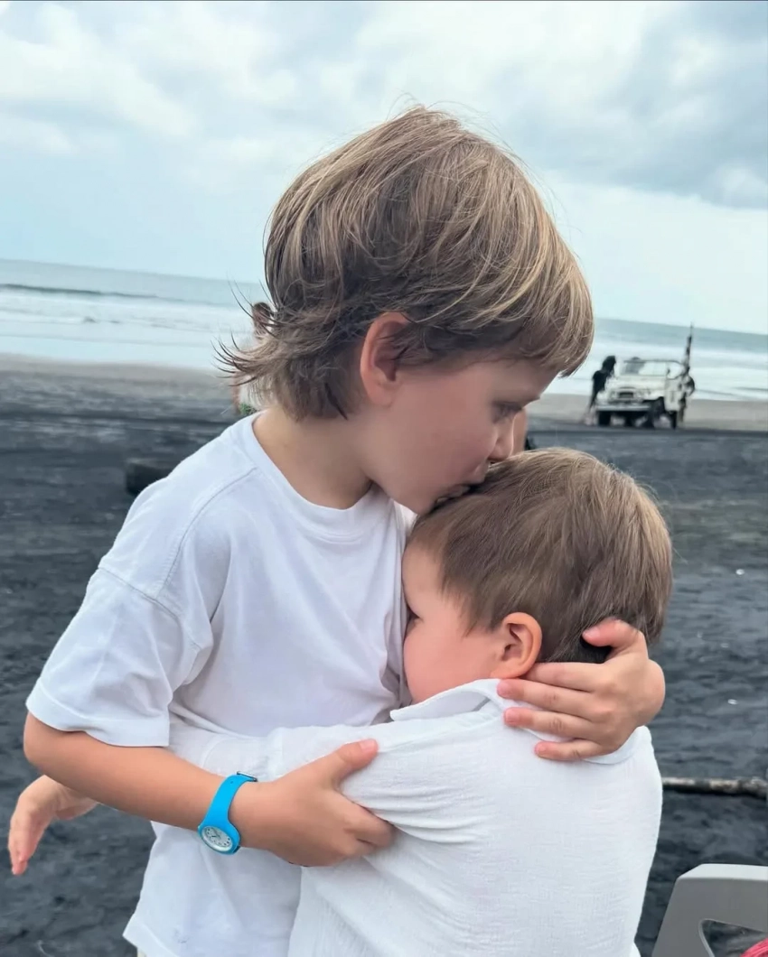 Беременная третьим ребёнком Регина Тодоренко тоже провела праздники с детьми и мужем Владом Топаловым, только не на отдыхе, а в командировке. В перерывах между съёмками ведущая проводит время с семьёй на "любимом острове", локацию которого она не раскрыла.