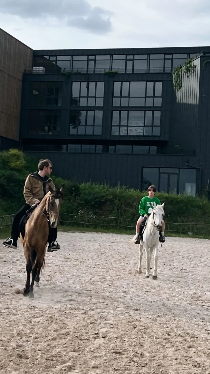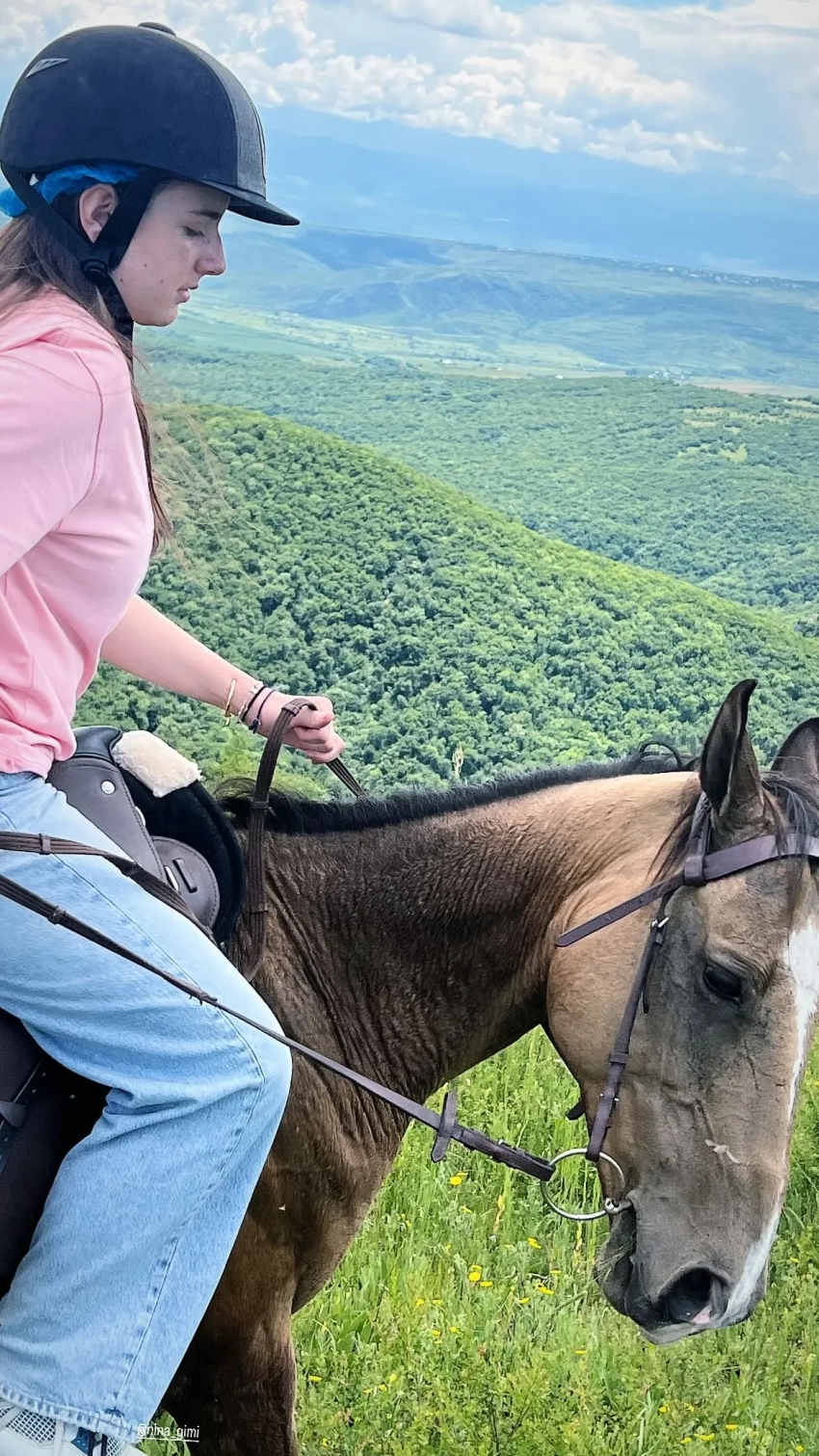 Судя по опубликованным в инстаграме* Гигинеишвили видео, он организовал конную экскурсию по окрестностям для дочери, также посадил на лошадь и сына. В роликах показано, как Нина и Иван ведут животных под уздцы по грунту на фоне аскетичных построек.