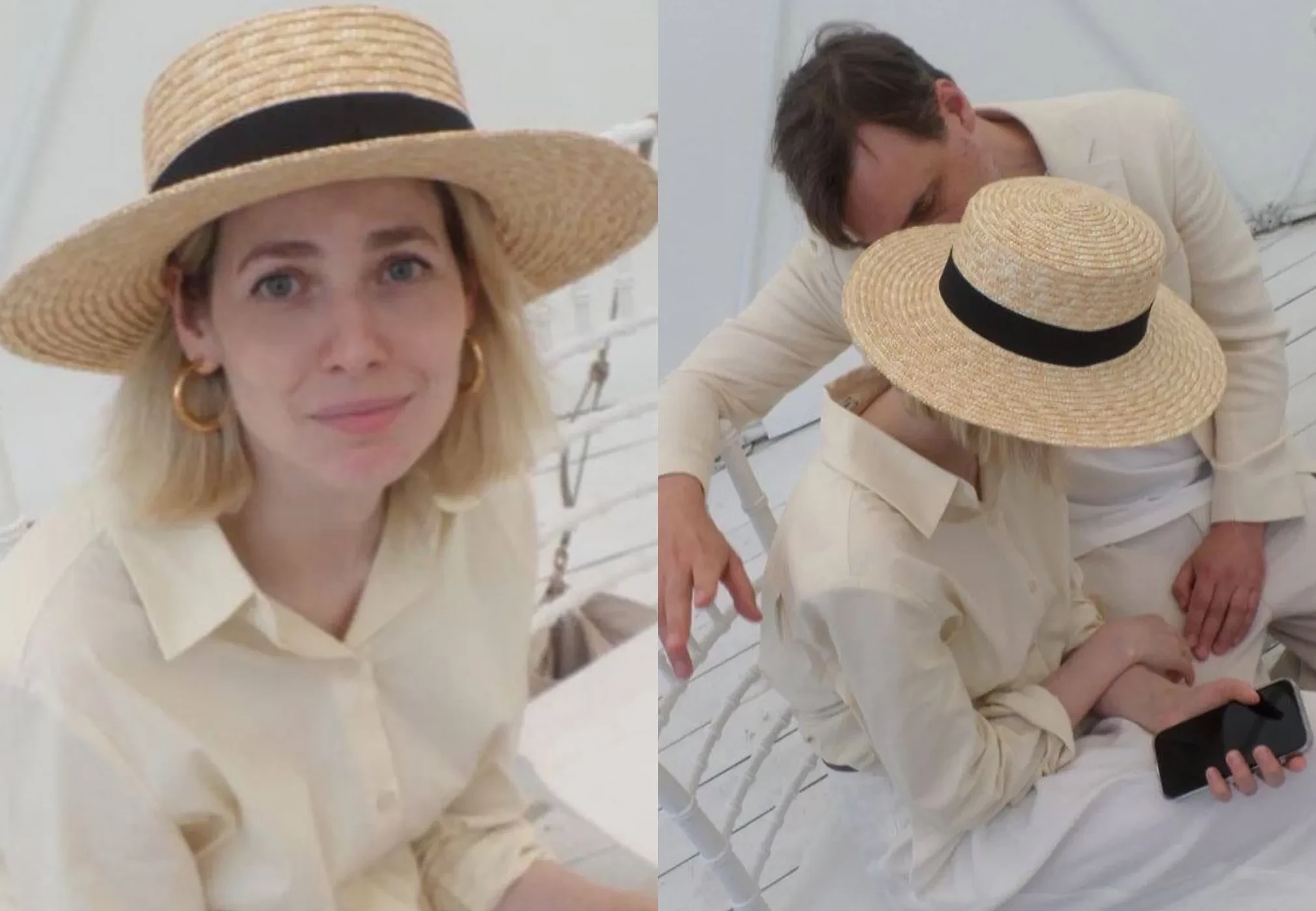 Юлия Снигирь, которая недавно показала себя без макияжа, опубликовала новые фото в соцсетях, снятые дочерью её супруга Евгения Цыганова Полиной. На снимках 42-летняя актриса позирует в белом костюме Present Simple и соломенной шляпе, а на одном из фото она запечатлена вместе с мужем.