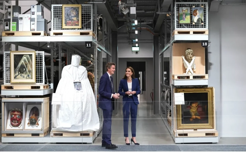 Кейт МиддлтонV&A East Storehouse — новое пространство Музея Виктории и Альберта, открывшееся две недели назад. Оно бесплатно предоставляет доступ к более чем 600 000 экспонатов в области моды, кино, искусства, дизайна и перформанса. Как покровительница музея, Кейт Миддлтон получила эксклюзивную экскурсию, в ходе которой ей рассказали о закулисной работе по сохранению уникальных предметов, включая одно из крупнейших полотен Пабло Пикассо.