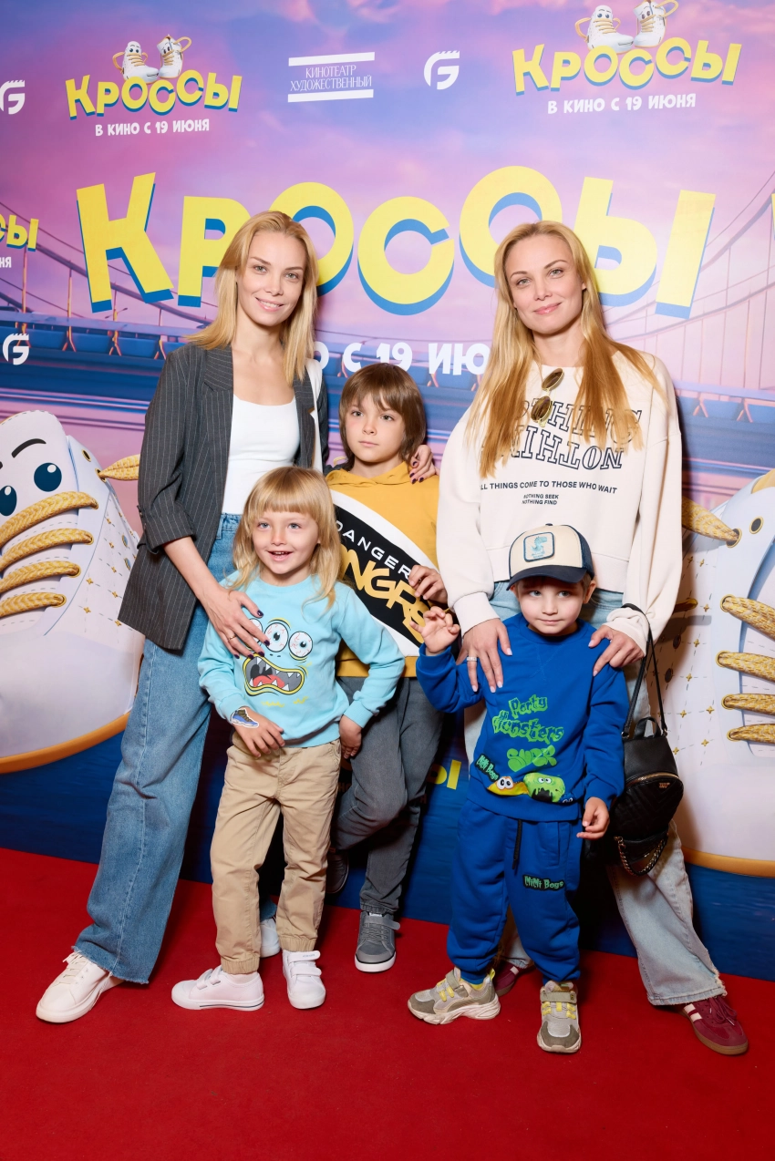 Татьяна и Ольга Арнтгольц, Елена Кулецкая с детьми на премьере мультфильма "Кроссы"