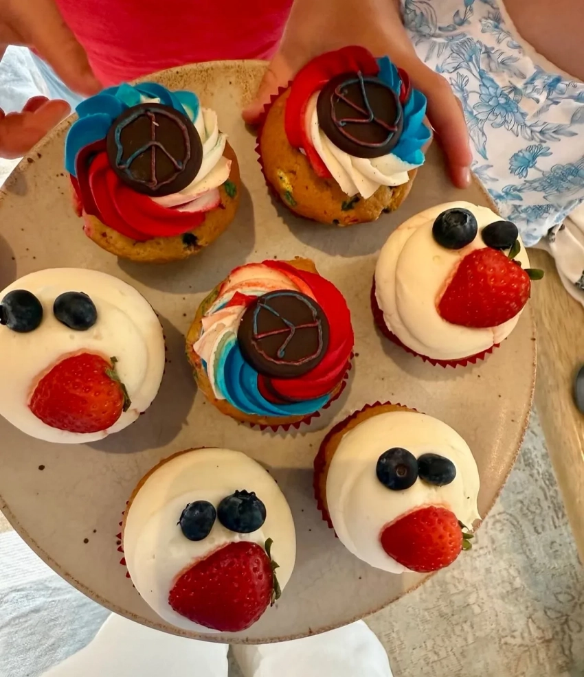 Меган Маркл поделилась в инстаграме* архивным фото с мужем, принцем Гарри, в честь Дня независимости США. К посту Герцогиня Сассекская также добавила снимки капкейков, украшенных в цвета американского флага и символом мира (Пацифик), и рассказала историю, связанную с этими сладостями: "Наше второе свидание было 4 июля 2016-го, и Эйч (прозвище, которое Меган дала своему супругу) принёс мне капкейки, чтобы отпраздновать. Сейчас, спустя годы, наши дети тоже переняли эту традицию. С Днём независимости! Пусть ваш день будет таким же сладким, как эти капкейки".