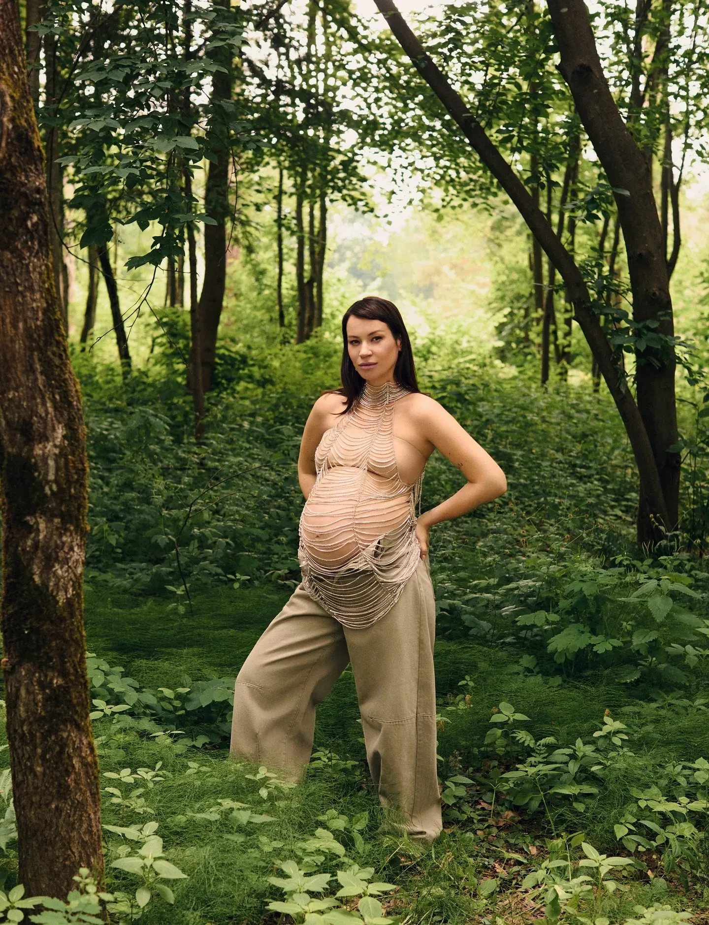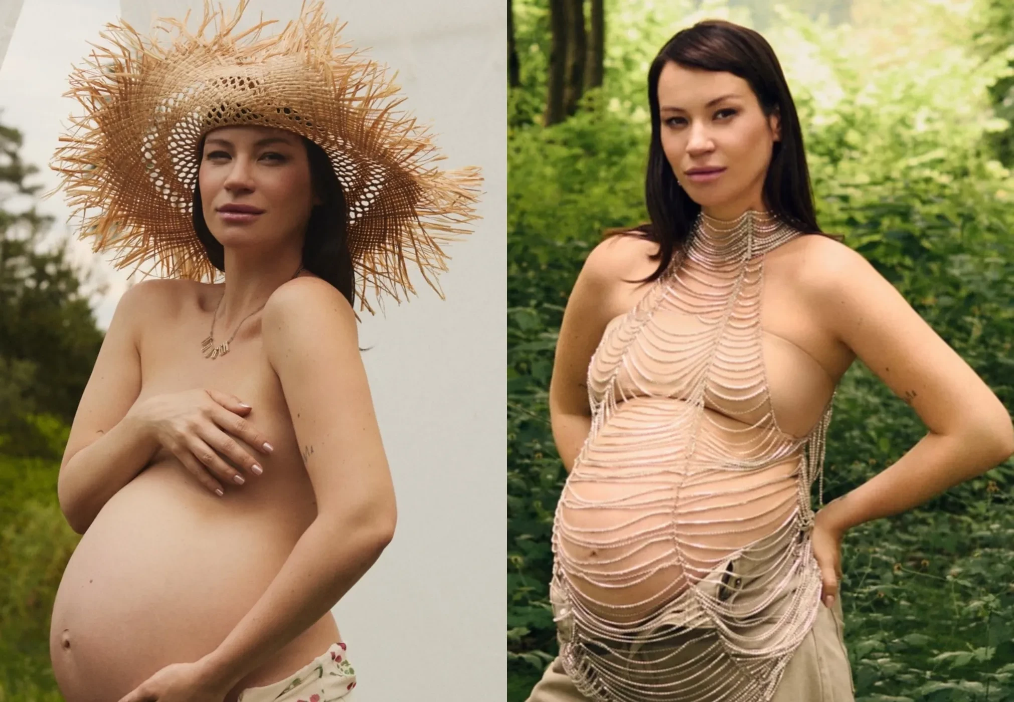 Ида Галич, которая ждёт второго ребёнка, украсила обложку свежего выпуска журнала "Новый очаг". В рамках фотосессии 35-летняя блогерша примерила несколько образов, включая максимально "голые". Например, Ида позировала топлес в одной юбке и соломенной шляпке, а также в бежевых широких брюках и прозрачном бисерном топе.
