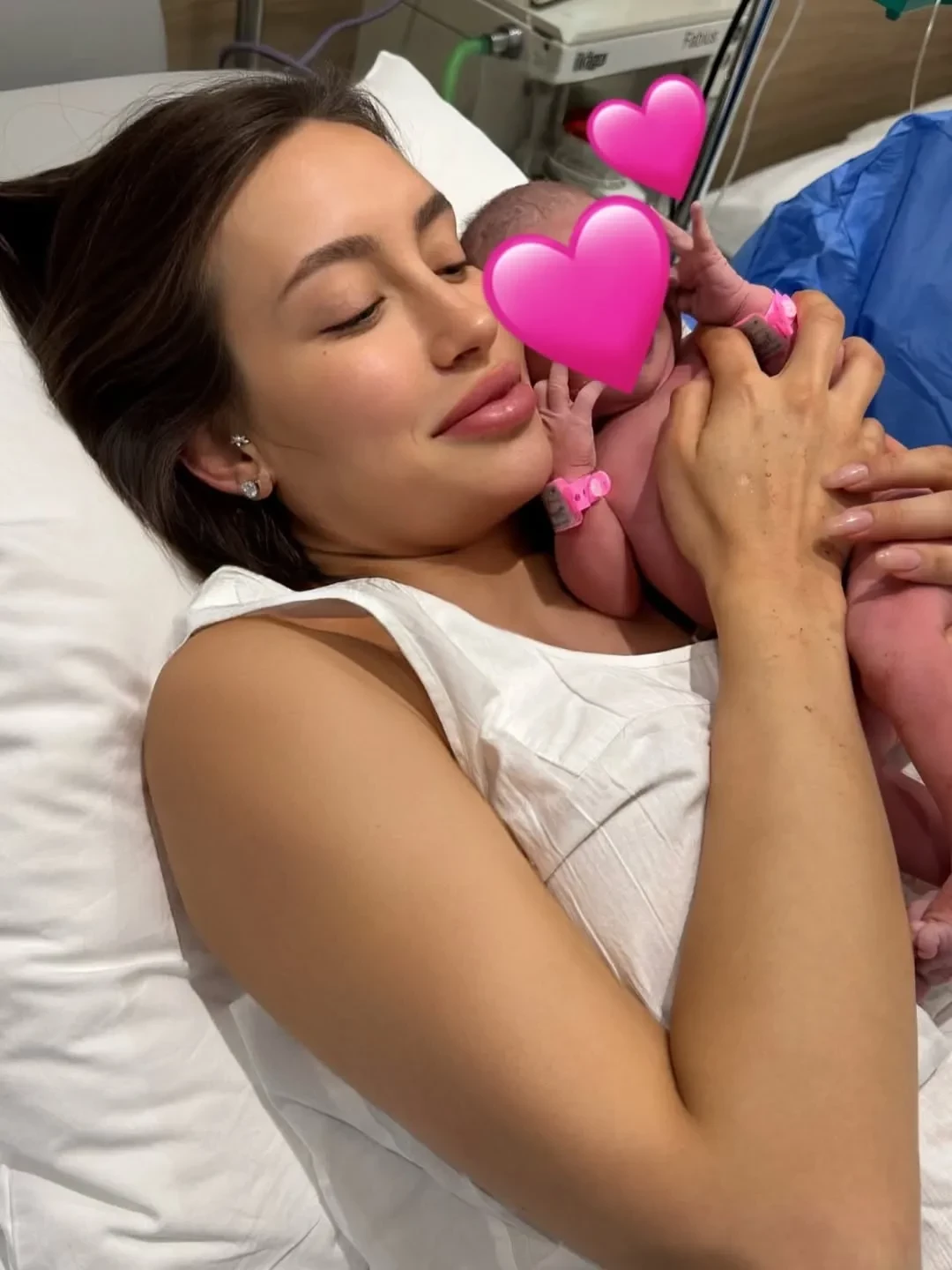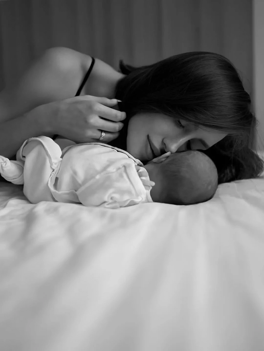 В подборку вошёл кадр, на котором Валентина прижимает дочь к себе сразу после родов, а также снимок, на котором она кормит малышку грудью.
