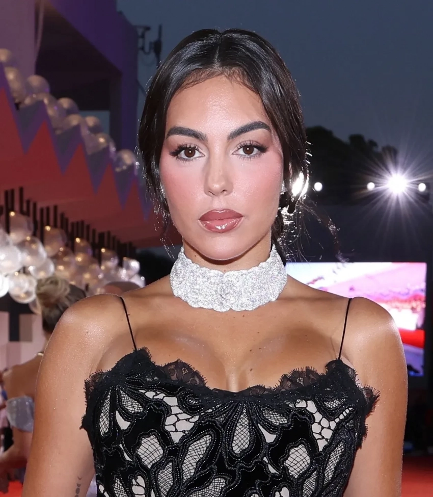 Барбара Палвин в IntimissimiДжорджина Родригес собрала на дорожке все атрибуты неудачного и вульгарного образа. Она позировала в кружевном платье Roberto Cavalli и бриллиантовом обвесе (включая помолвочное кольцо в 30 каратов от Криштиану Роналду), которым сильно перегрузила образ.