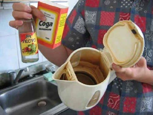 • Уксус — также эффективен в борьбе с известковым налетом. Рекомендуется смешать уксус с водой в равных пропорциях, залить в чайник и прокипятить. После охлаждения важно несколько раз промыть чайник, чтобы убрать запах уксуса.