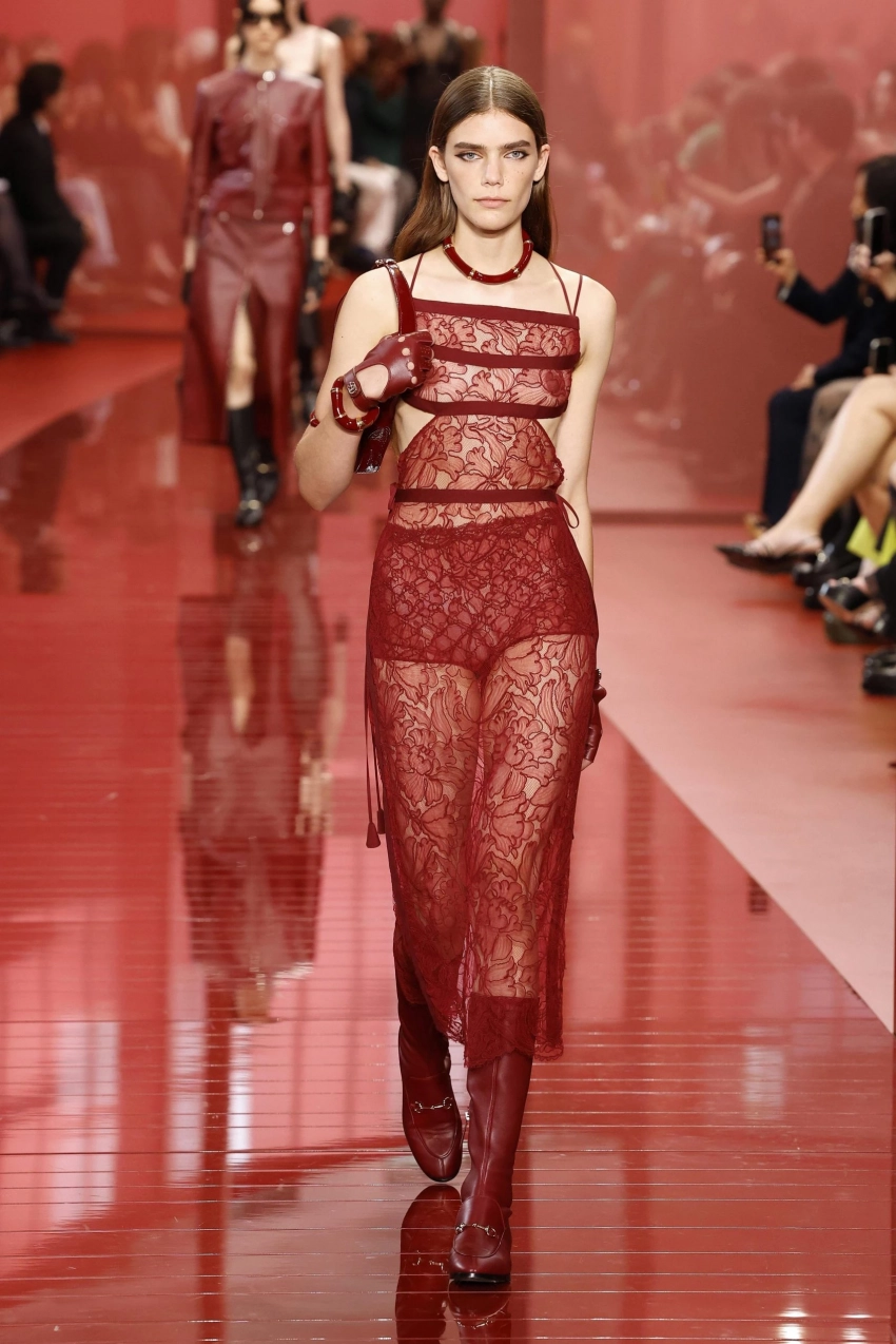 Если нравится бельевой стиль, но базовое атласное платье уже не радует глаз — присмотритесь к прозрачным кружевным моделям.
