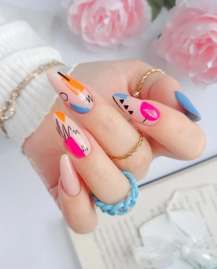 Абстрактный маникюр — это свобода самовыражения. Никаких правил, только фантазия: мазки, линии, цветовые всплески и неожиданные формы. Особенно выразительно такой дизайн смотрится на острых ногтях.