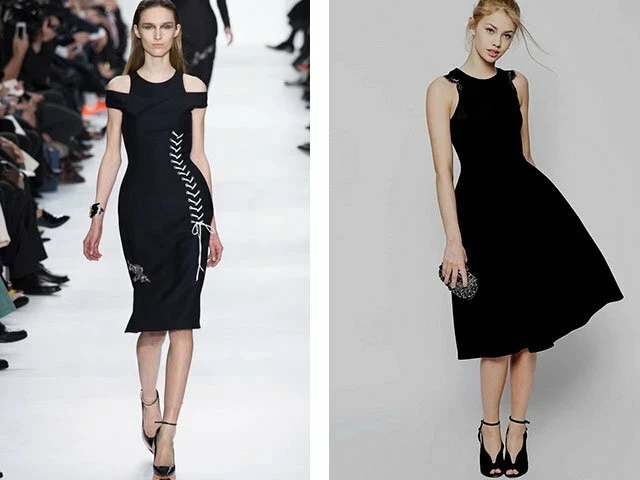 Платья и топы с асимметричным кроем привносят в образ нотку драматичности. Варианты с вырезами, укороченными подолами или на одно плечо станут отличным выбором для корпоративного вечера. Минималистичные аксессуары и лодочки с острым носком идеально завершат лук.